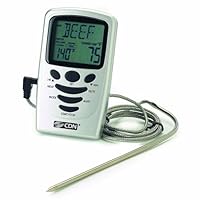 After much research into these devices, I decided to purchase the CDN brand for my husband as a gift. I chose this brand since it had a higher temperature range than that of the other brands available. This one goes up to 482degrees. So far he seems to love this thermometer. It seems very accurate in reading the internal temp of the meats. He loves that it allows him to program what type of meat and for beef the taste(rare,m.rare,med,well). The cable connecting the device to the probe seems to be pretty strong--braided wire. I have seen other devices by other brands that the cables "burn out". This was one of the deciding factors in purchasing the CDN brand. My husband loves the magnetic feature that allows him to stick it to the side of the oven! I am also excited to see the thermometer comes with a clip for candy making and frying. I havent had a chance to use it for this purpose yet, but it makes the device much more versatile & useful. The temperature display is quite large and easy to read...so it will work good for someone who cant read small print. I would actually give this product 4 &1/2 stars. The only reasons I would deduct half a star are: 1)the casing is plastic (cannot use on BBQ)and 2)the timer beeper isnt that loud (you cant hear it if upstairs or more than a room away, so you need to stay in earshot to hear the timer go off). All in all its a great product. I would recommend it. Buy it and you will never have dried out or undercooked meat again. Its well worth it! The chef in your life will thank you!Read Best Reviews of CDN Digital Programmable Probe Thermometer Here
